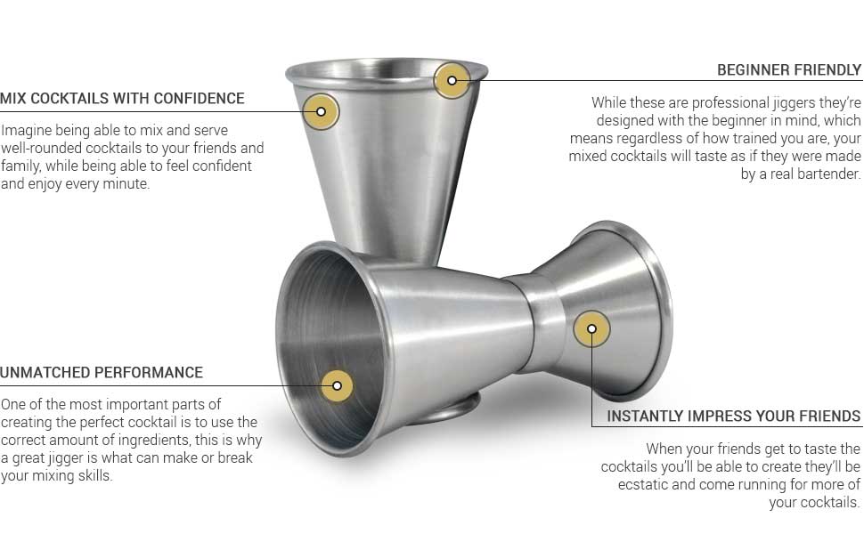 Pour with Confidence: The perfect tool for beginners and pros alike! Our drink jigger is precision engraved with measurement line you’ll need to make tasty drinks!
