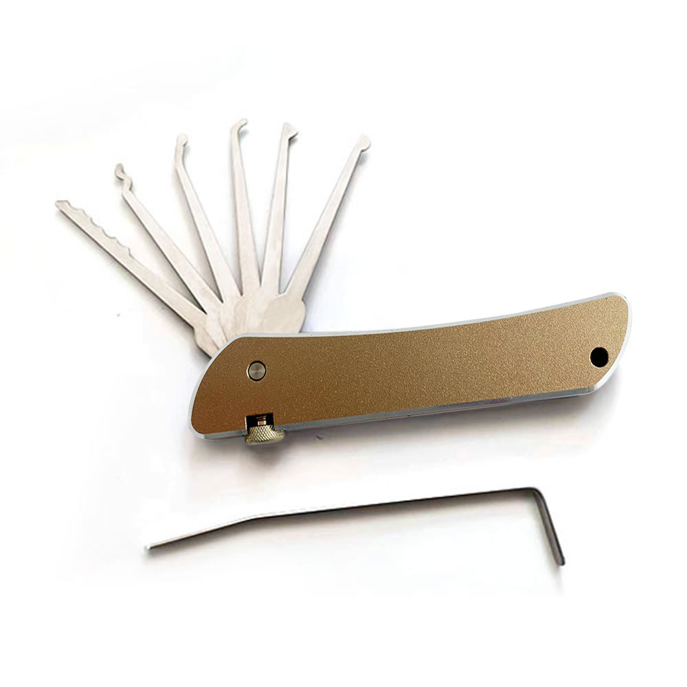 Light Gold Jackknife Pocket Lock Pick Set, Portable Folding Lockpick Tool